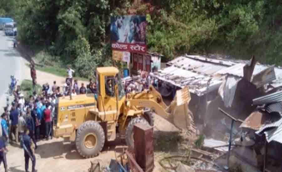 अतिक्रमण गरी निर्माण गरिएका घरटहरा अवैधरुपमा व्यापार–व्यवसाय गर्नेहरुले पटक पटकको आग्रहलाई नटेरेको डिभिजन वन कार्यालय नुवाकोटले जनाएको छ । सो कार्यालयले वनको क्षेत्र वरिपरि अतिक्रमण गरेका चार किल्लाभित्रका घरटहरा चलाउनेलाई हटाउन दश दिनको सूचना प्रकाशन गरेको थियो । दश दिन बितिसक्दा पनि अटेर गरी बसेकाले आज जिल्ला प्रशासन कार्यालय, जिल्ला प्रहरी कार्यालय र सशस्त्र प्रहरीको संयुक्त समन्वयमा अवैध टहरा डोजर लगाई भत्काइएको डिभिजन वन कार्यालयले जनाएको छ ।