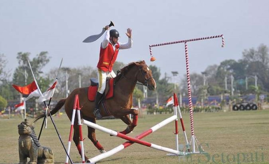 नारायणहिटी दरबार परिसरमा रहेको ‘वेग भक्ति सेवा’ आदर्श वाक्य रहेको सेनाको नेपाल क्याभलरीका घोडा प्रतियोगितामा समावेश गरिनेछ । साइकल रेश, शो–जम्प, ड्रिल राइड, क्रसकन्ट्री जम्पजस्ता खेलकुद प्रस्तुत हुनेछ । कुकुरको कौशलअन्तर्गत विविध रोमाञ्चक कलासमेत प्रदर्शन गरिनेछ ।