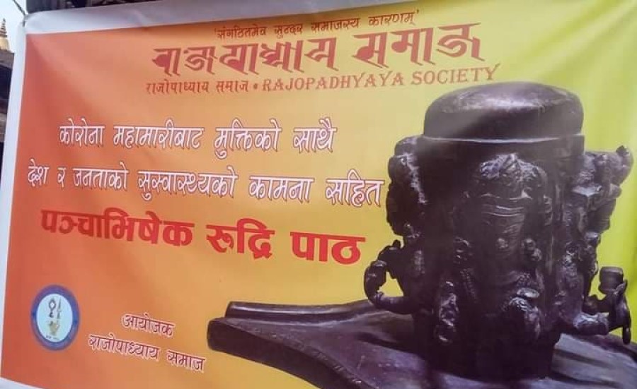 मंगलबार राजोपाध्याय समाजले काठमाडौं उपत्यकाको तीनवटै शहरको दरबार क्षेत्रको शिवालयमा रुद्रि पाठको आयोजना गरेको हो । समाजले कोरोना महामारीबाट मुक्ति साथै देश र जनताको सुस्वास्थ्यको कामना गर्दै पञ्चाभिषेक रुद्रि कार्यक्रमको आयोजना गरेको हो ।