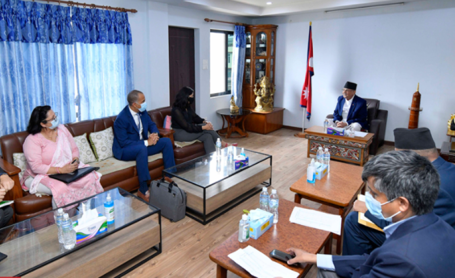 उपाध्यक्ष सुमारसँगै नायब उपाध्यक्ष जोनाथन ब्रुक्सको टोलीले सबैभन्दा पहिलो भेट अपरान्ह बालकोट पुगेर ओलीसँग गरेको हो । भेटमा एमालेका नेताहरू बिष्णु रिमाल र राजन भट्टराई पनि सहभागी छन्।