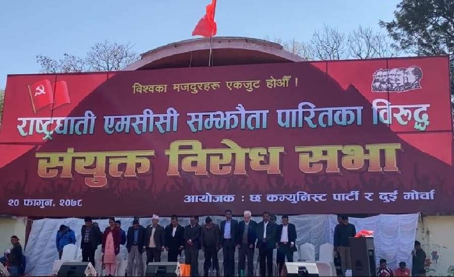 एमसिसी पारितविरूदेध छ साना दलकाे खुल्लामञ्चमा विराेधसभा