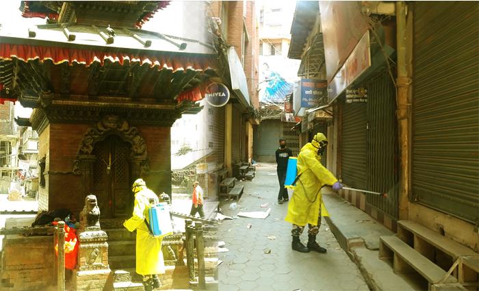 काठमाडौं– कोरोना भाइरस संक्रमणबाट बच्न काठमाडौं महानगरपालिका २४ वडा कार्यालय तथा महादेव मखन क्लबको सहयोगमा वडाका टोलहरुमा कीटनाशक औषधि छरिएको छ ।