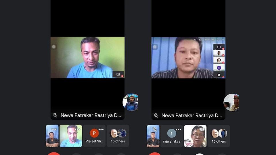 नेवाः पत्रकार राष्ट्रिय दबूको आयोजना मा काेभिड- १९ को जाेखिम, सञ्चार गृह र सञ्चारकर्मिमा परेको प्रभाव न्यूनीकरणको उपाय विषयक अनलाइन अन्तरक्रिया कार्यक्रम आज सम्पन्न भएको छ ।