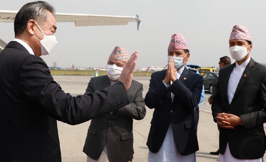 परराष्ट्रमन्त्री डा नारायण खड्काको मैत्रीपूर्ण निमन्त्रणामा नेपाल भ्रमणमा आएका विदेशमन्त्री वाङ १९ सदस्यीय प्रतिनिधिमण्डलको नेतृत्व गर्दै शुक्रबार आइपुगेका थिए ।