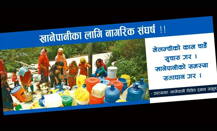 दबाब समूहका सदस्य प्रकाश अमात्य भन्नु हुन्छ, “सरकारले खानेपानीको व्यवस्था सहज रुपमा नगरेको हुनाले यसरी जनसमुदायबाट दबाब दिनको निमित उक्त कार्यक्रमको आयोजना गरिएको हो ।”