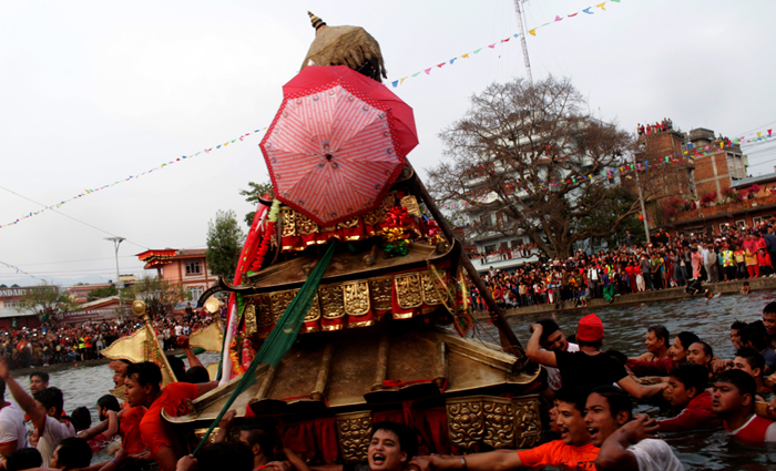 यही जात्राका लागि भाटभटेनीलाई रङरोगन गरी मन्दिरबाट बाहिर निकाल्ने गरिन्छ । यो जात्रा सुरु भएको सम्बन्धमा एउटा कथा प्रचलित छ । धेरै वर्ष पहिले चण्डोलको टुँडालदेवी, नक्सालको महालक्ष्मी, बालाजुको मनमैँजु र नुवाकोटी देवी स्नान गर्न भनी ठूलो ताल अर्थात् हाल गहनापोखरी भएको स्थानमा गएछन् । स्नान गर्ने क्रममा टुँडालदेवीको गहना पोखरीमा हराएछ । त्यसैबेलादेखि यो पोखरीको महत्व बढ्नुनका साथै नाम पनि गहनापोखरी राखिएको रहेछ । त्यसै समयदेखि हराएको गहना खोज्न यो जात्रा सुरु भएको विश्वास गरिन्छ ।