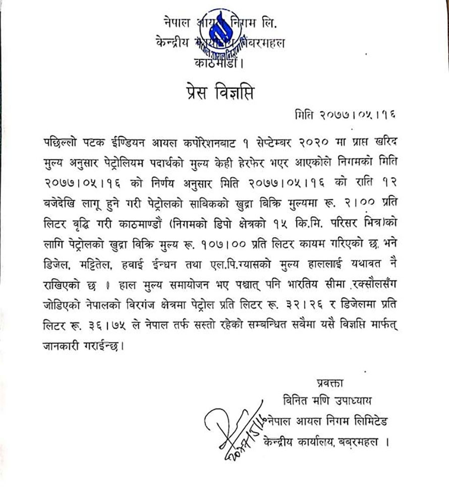 कोरोना भाइरसका कारण सिर्जित समस्याका कारण खनिज तेलको मूल्यमा भारी गिरावट भएको छ ।