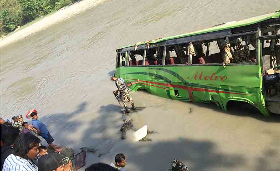 त्रिशूलीमा बस खस्दा पाँचको मृत्यु, २९ घाइते