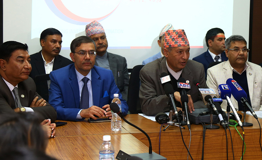 सञ्चार तथा सूचना प्रविधिमन्त्री गोकुल बाँस्कोटा, लगानी बोर्डका प्रमुख कार्यकारी अधिकृत महाप्रसाद अधिकारी, नेपाल उद्योग वाणिज्य महासङ्घ, नेपाल चेम्बर अफ कमर्स तथा नेपाल उद्योग परिसङ्घका पदाधिकारीलाई साथमा नै राखेर आयोजना गरिएको पत्रकार सम्मेलनमा अर्थमन्त्री खतिवडाले भन्नुभयो, “सम्मेलन सबै नेपालीको साझा अभियान हो । यसलाई सफल पार्न र देशमा वैदेशिक लगानी भित्र्याउन समेत महत्वपूर्ण अवसर हो ।”