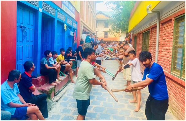बागलुङ - सोमबार साँझ बागलुङ बजारको नारायणचोकमा स्थानीयवासीको व्यापक चहलपहल थियो । पाकापुरानादेखि बालबालिकासम्म नारायणचोकमा भेला भएका थिए । केहीबेरमा नारायण मन्दिरको अघिल्तिरबाट मृदङ्गा र झ्यालीको ताल गुञ्जिन थाल्यो । ‘अखडा’मा लौरो समाएर तम्तयार भएका युवाहरू सोही तालमा लौरो जुझाउँदै नाच्न थाले । यो क्रम झण्डै डेढ घण्टा चल्यो ।