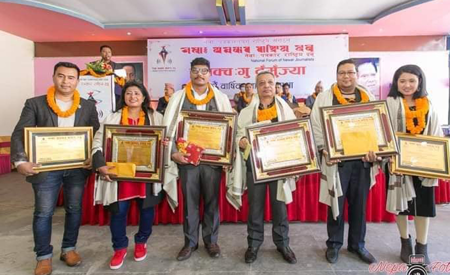 कार्यक्रममा जनआस्थामा प्रवन्ध सम्पादक वरिष्ठ पत्रकार राजेन्द्र स्थापितलाई ज्ञानज्योति लक्ष्मीप्रभा पुरस्कार प्रदान गरियो । २० हजार रुपैयाँ राशीसहित स्थापितलाई पुरस्कृत गरिएको हो । त्यस्तै नागरिककर्मी पत्रकार वृmष्ण किसीलाई रु. १५ हजार राशीसहित ज्ञानदेवी मणिरत्न स्थापित स्मृति पत्रकारिता पुरस्कार प्रदान गरियो । त्यस्तै फोटो पत्रकारितामा निरन्तर सक्रिय रहेकी महिला फोटो पत्रकारलाई रेखा शाक्यलाई बाबुराजा ज्यापु फोटो पत्रकारिता पुरस्कारबाट पुरस्कृत गरियो । उक्त पुरस्कारको राशी रु. १० हजार रहेको छ । बुद्ध धर्मको सन्देश प्रचार प्रसारमा योगदान दिएको भन्दै बोधि टेलिभिजन भिक्षु कुमार काश्यप स्मृति पत्रकारिता पुरस्कार प्रदान गरिएको छ । बोधि टेलिभिजनका कार्यकारी निर्माताले राजु नापितले बोधि टेलिभिजनको प्रतिनिधित्व गर्दै रु. १२ हजार राशीसहितको उक्त पुरस्कार ग्रहण गर्नुभयो । उत्तरी र दक्षिणी दुबै मोहडाबाट सगरमाथाको सफल आरोहण गर्ने पहिलो र हालसम्म एक मात्र महिला पत्रकार कल्पना महर्जनलाई पनि सोही कार्यक्रममा विशेष सम्मान प्रदान गरिएको थियो । त्यस्तै नेपाल सरकारको न्यूनतम पारिश्रमिक निर्धारण समितिमा सदस्यमा मनोनित हुने नेवाः पत्रकार ऋषिकेश श्रेष्ठलाई बधाईसहित सम्मान गरिएको थियो । सम्मानित सबैलाई मध्यपुर थिमि नगरपालिकाका प्रमुख मदन सुन्दर श्रेष्ठले दोसल्ला ओढाउनुभयो भने वागमती प्रदेशका सांसद राजेश शाक्यले सम्मान पत्र प्रदान गर्नुभयो ।