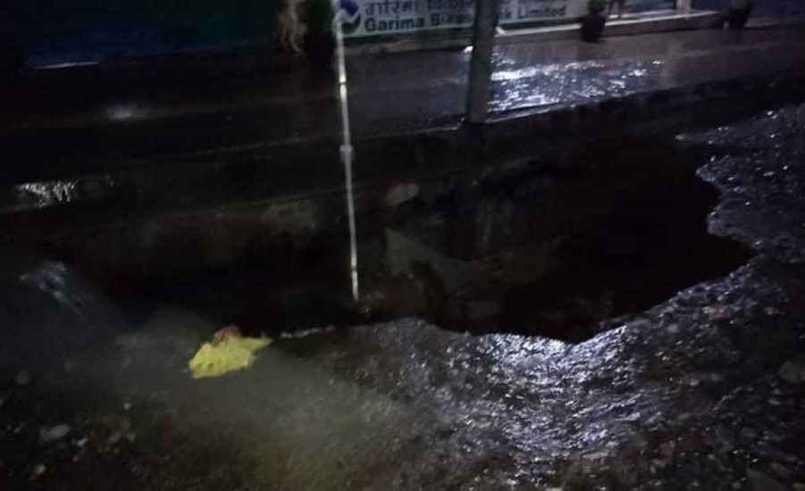 पोखराको महेन्द्रपुल नजिकैकै सडक भासिएको छ । महेन्द्रपुल सेलवेज गेटको पारी रहेको गरिमा विकास बैंकअगाडिको सडक भासिएको हो ।