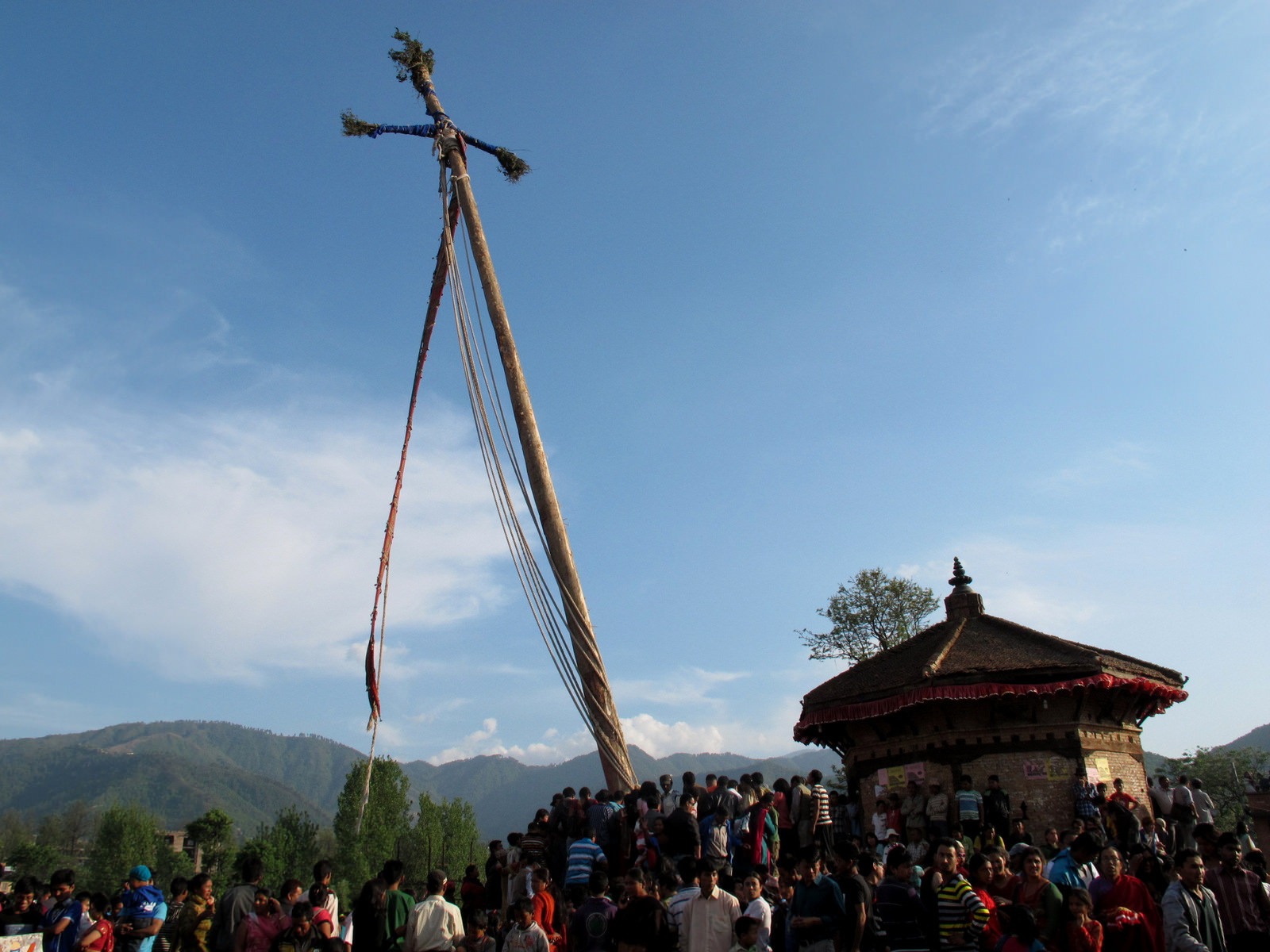 पुरानो वर्षको बिदाइ र नयाँ वर्ष आगमनको पूर्वसन्ध्यामा उठाउने उक्त लिङ्गोको टुप्पोमा नाग र नागिनीको चिह्न मानिने ‘हलिङ्पत’रहेको हुन्छ भने लिङ्गो उभ्याउने क्रममा भैरवनाथ र भद्रकाली रथलाई अगाडि ल्याउने गरिन्छ ।