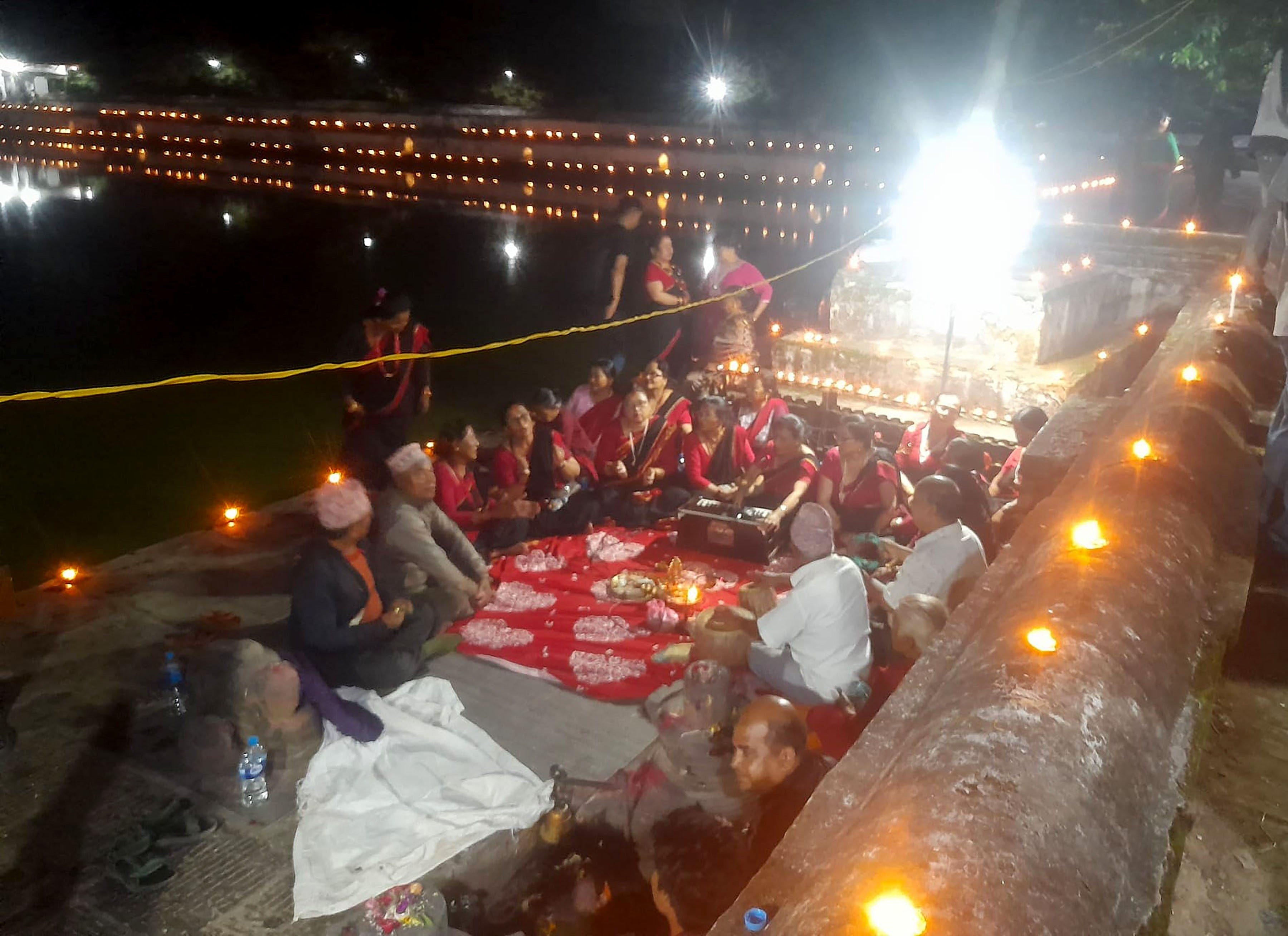 भक्तपुर - इन्द्रजात्राको दिन मंगलबार साँझ भक्तपुरको इन्द्र दह अर्थात सिद्धपोखरीमा इन्द्र देवतालाई बिराजमान गराइ दीपावली गरिएको छ ।