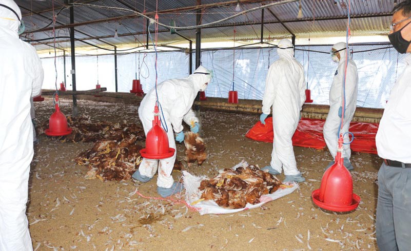 बर्डफ्लु सङ्क्रमित क्षेत्रको चार किल्लाभित्र कुखुरा नष्ट गरी खाडलमा पुरिएको छ भने खाली खोरलाई सङ्क्रमणमुक्त बनाउँदै बर्डफ्लु प्रभावित क्षेत्रका कुखुरा फार्ममा चुना र ‘भिर्कोन स्प्रे’ छर्ने काम गरिएको छ ।