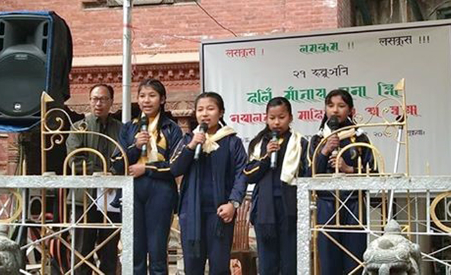 काठमाडौं– अन्तर्राष्ट्रिय मातृभाषा दिवसको अवसरमा काठमाडौंको मछिन्द्रबहालमा फागुन ९ गते शनिबार सकल नेपाःमि नामक संस्थाकाे आयोजनामा एक साहित्यिक र सांगीतिक कार्यक्रम भएको छ ।