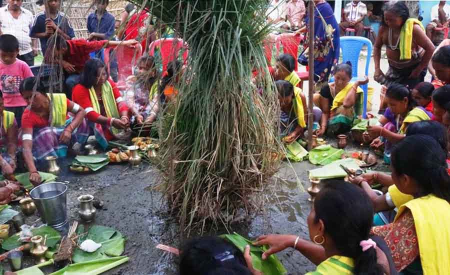 पूजाका लागि यस मौसममा उत्पादन हुने फलफूल आँप, लिची, अठिया केरा, काँक्रा र राजवंशी भाषाको डोहा ९वडहर० फल तथा उसिना चामल, दूध, दही आदि सामग्री प्रसादको रुपमा चढाई पूजा गरिन्छ । पूजापश्चात प्रसादको रुपमा खीर, फलफूल वितरण गरिन्छ । यो पर्व लोक कथनसँग सम्बन्धित रहेकाले पर्वसँग जोडिएको लोक कथावाचन र श्रवण गर्ने गरिन्छ ।
