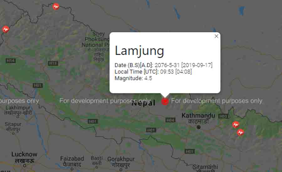 लमजुङलाई केन्द्रबिन्दु भएर ४।५ रेक्टर स्केलको भूकम्प