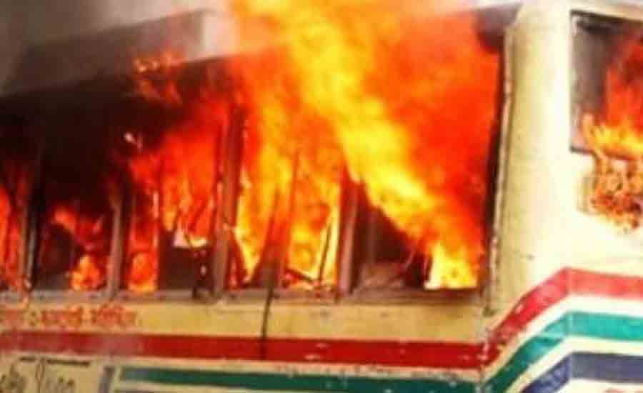 विप्लवका कार्यकर्ताद्वारा बसमा आगजनी