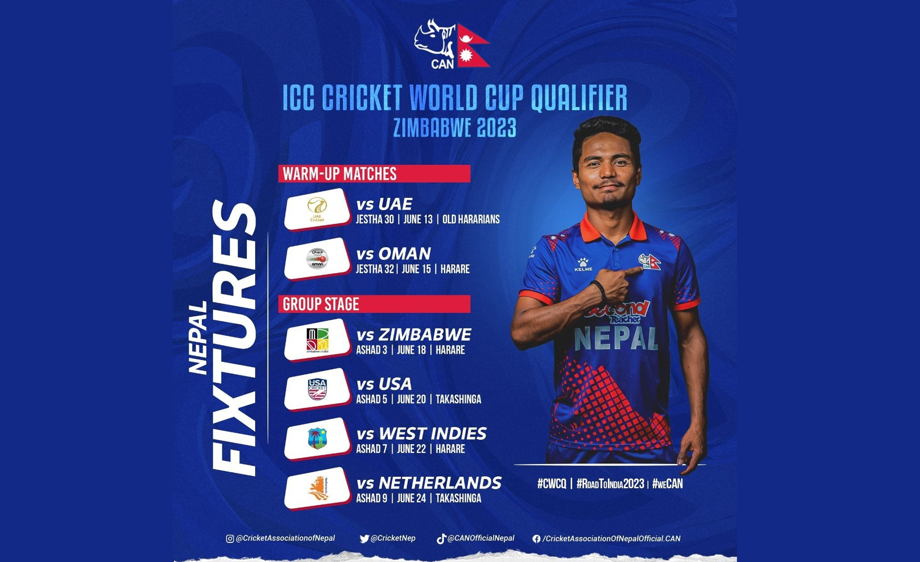 जिम्बावेविरुद्ध १८ जुन अर्थात् असार ३ मा हुने खेल टेस्ट राष्ट्रविरुद्ध नेपालको पहिलो एकदिवसीय अन्तर्राष्ट्रिय (ओडिआई) मान्यता प्राप्त खेल पनि हुनेछ ।