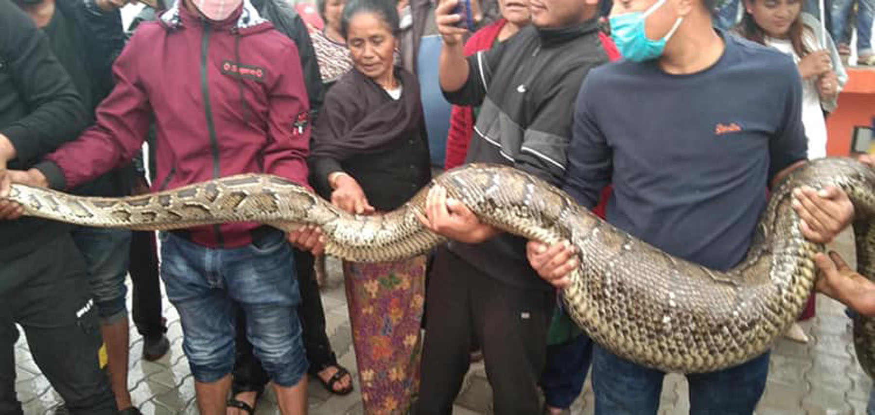 इलाम सूर्योदय नगरपालिका ५ पर्यटकीय गन्तब्य अन्तुमा फेला परेको करिव ४० किलोको अजिंगर फेला परेकाे हाे ।