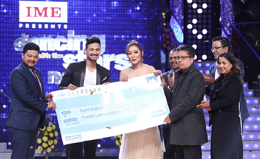 काठमाडौं - रियालिटी शो ‘डान्सिङ विथ दि स्टार्स नेपाल’को उपाधि सुमी मोक्तान र विजु पार्कीले जितेका छन् ।