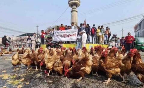 सडकमै अण्डा र कुखुरा फालेर विरोध