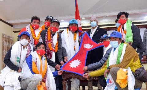 काठमाडौं - सरकारले सगरमाथालगायतका उच्च शिखरका विजेतालाई विभिन्न मानपदवी दिने घोषणा गरेको छ । प्रधानमन्त्री केपी शर्मा ओलीले सगरमाथासहित हिमाल आरोहण गरेर देशको शान र पहिचानलाई उचो बनाउने कार्यमा संलग्न आरोहीको सम्मानका लागि सरकारी तवरबाट विशेष मानपदवीका साथ सम्मानको शुरुआत गरिने घोषणा गरेका हुन् । विश्वकै दोस्रो अग्लो हिमाल ‘केटू’ को शिशिर याममा सफल आरोहण गरी नयाँ अभिलेख बनाएका निर्मल पुर्जा ‘...