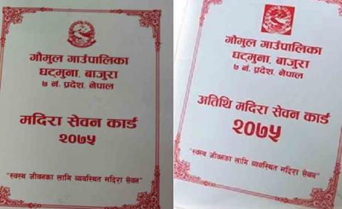 सुदुरपश्चिम प्रदेशस्थित बाजुरा गाउँपालिकामा परिचय पत्र विना रक्सी किन्न र सेवन गर्न पाइँदैन । गाउँपालिकाले गत वर्ष असारदेखि मदिरा नियन्त्रण तथा व्यवस्थापन कार्यविधि २०७५ नै बनाएर कार्यान्वयनमा ल्याएपछि त्यहा अहिले रक्सी खाने मानिसहरु देखा पर्न छाडेका छन् । गाउँपालिका प्रमुख हरिबहादुर रोकायाले जनताको स्वास्थ्य हेरेर मदिरा नियन्त्रण सुरु गरेको बताए । अहिले सम्म सम्म दुइ सय जनाले मदिरा पिउने परिचय...
